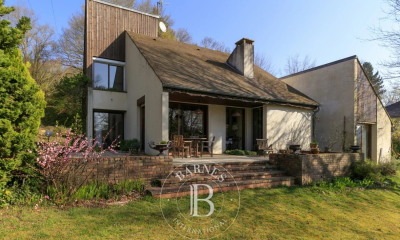 Just 24 km southwest of Paris, in the heart of the Chevreuse Valley Regional Natural Park, this 1970s architect-designed house embodies the charm and creative freedom of its era. Located ten minutes from the Saclay Plateau, a five-minute walk from shops, and fifteen minutes from the Courcelles-sur-Yvette RER B station, it enjoys an ideal location between unspoiled nature and urban vibrancy. Built on a vast, wooded plot of 2,850 sqm, the property is distinguished by its unique architecture: a graphic roof with multiple ridges, generous volumes, and a light-filled interior. With 230 sqm of living space, it also includes a separate 36 sqm studio. The grounds, a verdant haven, offer a peaceful setting where each season creates its own unique green tableau. From the moment you step inside, the tone is set: a bright entrance hall leads, on the left, to a charming period kitchen with a pantry and storage area. On the right, an elegant guest bedroom boasts its own private bathroom and ample storage. Opposite the entrance, the spectacular cathedral-ceilinged living room, enhanced by a 7-meter ceiling height, exudes a grand atmosphere. A majestic Louis XIV-style solid oak bookcase takes pride of place, underscoring the unique character of the property. Large bay windows open onto a south-facing terrace, which extends into the landscaped gardens. A few steps down, an intimate sitting room with an open fireplace invites relaxation. This leads to a second south-facing bedroom, complete with a study area and a shower room. To the east, a conservatory and its pergola open onto a secluded terrace, perfect for enjoying your morning coffee. Upstairs, an elegant L-shaped mezzanine overlooks the living room and leads, on one side, to a third bedroom with an en-suite shower room and toilet, and on the other, to a light-filled boudoir offering a view overlooking the living room. A full basement includes a cellar, storage space, and the utility room. Les Sablons Elementary School is 450 m away. The high school is 1.4 km away (4 minutes by car or 15 minutes on foot). Grandes Écoles and Paris-Saclay University are a 10-minute drive away. Energy rating: C (131) / Climate rating: A (4). Estimated annual energy costs (including subscriptions, years 2021, 2022, 2023): between EUR2,150 and EUR2,960. Information on the risks to which this property is exposed is available on the Géorisques website.