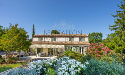 40 Minutes from Aix-en-Provence – Elegant Renovated Property – 309 m² – 5 Bedrooms – Landscaped Grounds of 2,380 m² – Infinity Pool Nestled in the heart of an authentic Provençal village, just 40 minutes from Aix-en-Provence, this refined property has been entirely renovated in 2025 with quality materials and meticulous attention to detail, blending contemporary comfort with timeless charm. Set on a beautifully landscaped and fully enclosed 2,380 m² plot, adorned with majestic oak trees, the home offers approximately 309 m² of living space with generous, light-filled volumes designed for both family life and entertaining. The ground floor features a striking entrance housed in a restored stone tower, a spacious living room with fireplace insert, a fully fitted kitchen extended by a utility/laundry room. A ground-floor suite with en-suite shower room, walk-in dressing area, and private terrace completes this level, along with a home office (technical hub with home automation and security system) and a guest WC. Upstairs, a second suite with en-suite shower and private balcony, two additional bedrooms with built-in wardrobes and balcony access, and a family bathroom with walk-in shower, bathtub, double sinks and a separate WC. The master suite offers a serene and elegant retreat, with a bedroom opening onto a balcony, a custom-fitted dressing room, and a luxurious bathroom with walk-in shower, bathtub, double vanity, and separate WC. At the top of the tower, a charming space has been converted into a games or cinema room, while the attic provides additional potential for storage or development. Outdoors, you’ll find 250 m² of terraces, a 4x10 m infinity saltwater pool with full automation, protective cover and child safety barrier. A pool house and a 30 m² summer kitchen with pizza oven and sink complete the entertaining space. Stone restanques, a pétanque court, automatic irrigation, dual electric gates, video surveillance, and outdoor Wi-Fi further enhance this exceptional living environment. A turn-key property, ideal as a main residence or second home, for those seeking space, elegance, and peace — all just a short drive from the heart of Aix-en-Provence.