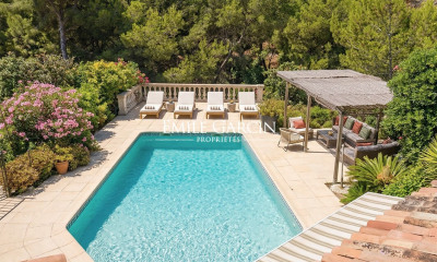 In a quiet environment, with south exposure this house 273 m² (about 2935 ft²), built in 1988, with a land size of 988 m² (about 0,24 acres) comprises 7 rooms including 5 bedrooms, 1 bathroom and 2 toilets. It is provided with a living room, with dining room, with a Separate kitchen, with 2 balconies, with a swimming pool, with a terrace and with 5 parkings. Heating : Individual electric.