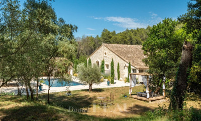 Character property for sale 10 minutes from Saint-Rémy-de-Provence by Janssens Immobilier. Close to the iconic village of Saint-Rémy-de-Provence, this magnificent historic property combines Provençal charm and authenticity. This exceptional residence includes a main house and a caretaker's house, all nestled within a lush park. Covering approximately 530 m², the main house impresses with its generous spaces. On the ground floor, you will find a large entrance hall, guest WC with cloakroom and hand basin, a beautiful living room with a fireplace, TV room/library, kitchen with pantry/laundry room, storage room, WC with hand basin, dining room with fireplace, office with fireplace, fitness room (convertible into a bedroom), and a shower room with hammam. Upstairs, there are 6 suites with bathrooms and dressing rooms, including a sumptuous master suite of over 80 m². The caretaker's house offers independent living space. The ground floor includes a living room-kitchen, and the upper floor features 3 bedrooms, a bathroom with WC, a mezzanine, and a terrace. Annexes include a 34 m² enclosed garage, a carport for 4-5 vehicles, a garden technical room, a boiler room, and a utility room. Set on a landscaped park of over two hectares, this enchanting property features a tennis court, a boules court, and an olive grove. A large swimming pool, measuring 13 x 6 m, is accompanied by a 34 m² pool house to complete the relaxation area. Some renovation work is required. This exceptional, charming property is a rare find on the market and not to be missed. Property for sale by our Saint-Rémy-de-Provence agency. Information on risks to which this property is exposed is available on the Géorisques website: http://www.georisques.gouv.fr.