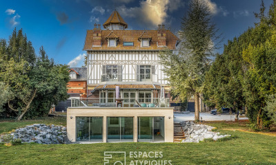 With south-west exposure this house 377 m² (about 4053 ft²), built in 1986, with a land size of 2210 m² (about 0,55 acres) contains 11 rooms including 5 bedrooms, 3 bathrooms and 3 toilets. It is equipped with a living room, with a Fitted separate kitchen, with a swimming pool, with a terrace, with 2 garages and with 5 parkings. Heating : Individual fuel oil.