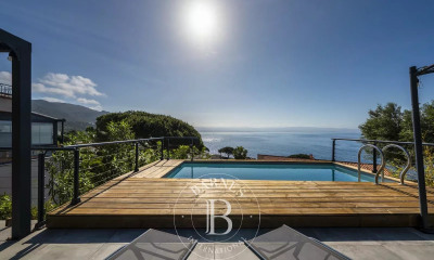RV1963 – San Andréa d’Orcino Perched in a verdant, tranquil setting with panoramic sea views, this villa spans approximately 1,851 sq.ft and embodies serenity, modernity, and Corsican charm. The luminous open-plan living area includes a spacious living room, dining room, and kitchen. The sleeping quarters consist of four bedrooms, one master suite with en-suite bathroom and dressing room, plus three additional bedrooms with private shower rooms, along with a study and storage room. Outside, a generous terrace and a 430?sq.ft infinity pool extend the living space into nature, all set within a beautifully landscaped plot of approximately 48,800?sq.ft. Located just around 30 km from Ajaccio and its airport, this home offers both easy urban access and the tranquility of Corsican maquis. Seller’s fees apply.