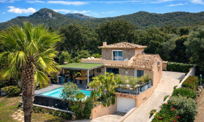 In a quiet environment, with an open view and north-south-east-west exposure this house 113.8 m² (about 1223 ft²), built in 2001, with a land size of 3000 m² (about 0,74 acres) contains 5 rooms including 2 bedrooms. It is equipped with a living room, with a Separate kitchen, with a swimming pool, with a garage, with a cellar and with 6 parkings. Heating : Reversible airconditioning.