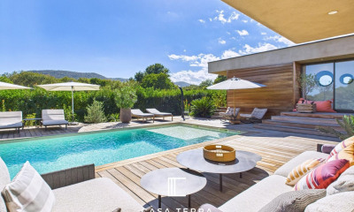 The elegant and pared-down decoration of the villa 'Terra' will not leave you indifferent. The interior has been completely redesigned with tasteful furniture and custom oak fittings. The villa can be sold fully furnished, ready to live in. The property offers high-quality finishes and materials: ducted air conditioning, tall minimalist joinery, electric gate, …