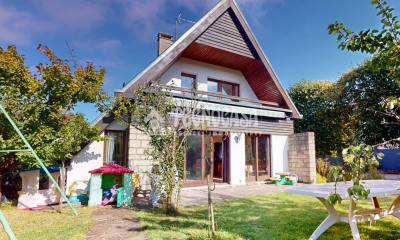 Located in a quiet and green residential environment in the Rueil-au-Chesnay district, this architect-designed house from 1993 seduces with its generous volumes, its brightness and its perfectly thought-out layout. Developing 201 m² (2,200 sq ft) under the Carrez law and 267 m² (2,800 sq ft) of living space, it is structured around a vast living space of nearly 54 m², including a living/dining room with a fireplace, extended by a triple-glazed veranda equipped with a new blind, opening onto a pleasure garden of approximately 115 m², not overlooked. The eat-in kitchen offers a convivial and functional space, perfectly integrated into the life of the house. The ground floor also accommodates a master suite with its private bathroom, as well as a guest toilet with a washbasin. Upstairs, four very large bedrooms, all equipped with large built-in closets, share a shower room with WC and a second bathroom. An attic completes the ensemble, providing additional storage space. The full basement houses a double garage, a laundry room, a cellar, and numerous additional storage spaces. The entire house benefits from double glazing, electric shutters on all openings, and individual electric heating. At the front, the garage access allows for easy parking of two additional vehicles. Carefully and regularly maintained by its owners, this house is immediately habitable, with no work required. Semi-detached on one side, it offers a warm, functional, and bright living environment, ideal for a family looking for comfort, space, and serenity in the immediate vicinity of Versailles. Price including VAT and Agency fees payable by the seller.
