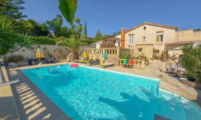 A swimming pool (12 x 5), a pétanque court with a bar, numerous equipped terraces and parking for six cars complete this stunning property.