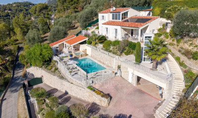 Located on the heights, just a few minutes from Nice, this charming 187 m² house is nestled in the heart of a secure estate and offers an exceptional view of the Baou de Saint-Jeannet, the hills of Nice, with a glimpse of the sea. Facing south and west, it enjoys optimal sunlight throughout the day. The house is composed as follows: - Main level: a spacious living/dining room bathed in light, an independent kitchen opening onto its own terrace, as well as a guest WC. - Level -1: a laundry room, an independent WC, a master suite with bathroom, shower, dressing room, and private terrace, as well as two bedrooms, each with its own shower room. - Level -2: two additional bedrooms, a bathroom, and direct access to the pool. A rare property, ideal for families, offering tranquility and spectacular views of the Mediterranean and the surrounding hills. Buses, schools, and shops nearby. DPE: C-149; GES: A-5 Estimated annual energy costs for the property: euros1860 - euros2570 Condominium of 27 lots, average annual charges: euros644, ongoing procedure: no Transaction fees including VAT payable by the seller Information on the risks to which this property is exposed is available on the Géorisques website: www.georisques.gouv.fr The luxury real estate market on the French Riviera is one of the most attractive in the Mediterranean region. Vacation homes and secondary residences on the French Riviera offer not only an unmatched style and quality of life but also represent, given the international economic situation, a safe investment and a smart retirement project, especially at premium addresses. Nearby, Nice International Airport, spectacular with its unique approach along the coast, serves more than 100 direct destinations.