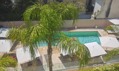 The property includes a villa located on the eastern part of the building, benefiting from its own private entrance, garden, spacious terraces, summer kitchen, and above all a private swimming pool — an exceptionally rare feature in the town centre.