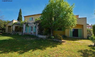 In a residential area, close to all the amenities of downtown Salon, lies a bourgeois residence where new chapters are about to begin: nestled in a nearly 1000 m² park, hidden from view, it is accessed through a grand gate. The initial attraction is immediately apparent in the verdant and floral setting that surrounds the property. A few steps onto the expansive 40 m² terrace lead to the entrance; from the moment you step inside, the spaciousness and light captivate you: the ceiling height, between 3 and 5 meters, sets the tone; a hallway leads to a bright, open-plan living and dining area of over 52 m², featuring a French-style fireplace, marble floors, and a cathedral ceiling. On the ground floor, this level features a 12m² separate kitchen opening onto the terrace, a 4m² dressing area with large built-in wardrobes, and a sleeping area comprising two bedrooms of 12 and 13m², a shower room with a walk-in shower, and a separate WC. This level also provides access to an 18m² garage with a small shower room and a 6m² cellar, which could be converted into a beautiful wine cellar. Let's now explore the second living area of the house: it can be accessed from the living room and its 10m² mezzanine, or via a separate exterior entrance. This is another significant discovery: a partially covered 58m² sun terrace, ideally south-facing and offering complete privacy, which provides access to the apartment currently used for professional purposes. It can quickly become a spacious two-room apartment (T2) with its 60m², divided between a 39m² living area with an open-plan kitchen, a bedroom, an office, and a modern bathroom with a walk-in shower. Let's go back down to the garden at the rear of the house. To the east, a terrace with a Provençal fountain and a lovely shaded area invites you to relax and enjoy breakfast in the morning sun. A path around the house leads to the front, where you'll find a covered terrace and an 8m² workshop equipped with large closets. Interior comfort is ensured by reversible air conditioning in the bedrooms, high-end convector heaters, and mosquito nets on every window. In the garden, a well and automatic watering system maintain the beauty of the property's green spaces. This house offers endless possibilities: it could be a family home with defined spaces, a residence combining professional and family life, or even an opportunity to generate additional income from a separate section of the property. Countryside at the heart of the show, come and share our favorite! Sylvie Grunder, independent real estate agent, 06 66 44 77 37 or Perrine Starot, independent real estate agent, 06 66 51 90 54. sylvie.grunder@capifrance.fr or perrine.starot@capifrance.<BR> Agency fees are payable by the buyer, amounting to 4.17% including VAT of the price excluding fees.<BR>Les informations sur les risques auxquels ce bien est exposé sont disponibles sur le site Géorisques : www. georisques. gouv. fr.<BR><BR>** ENGLISH SPEAKERS: please note that Capifrance has an international department that can help with translations. To see our range of 20,000 properties for sale in France, please visit our Capifrance website directly. We look forward to finding your dream home!