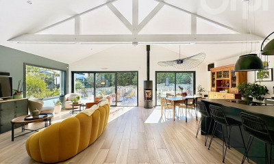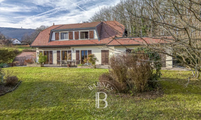 ANNECY SOTHEBY'S INTERNATIONAL REALTY presents this beautiful architect-designed house of approximately 190 m², set on a lovely plot of 1,898 m². The property impresses with its unique style, abundant natural light, and exceptional views of the Mont Blanc alpine range. Nestled in a peaceful environment, entirely free from any disturbances, this home perfectly combines comfort, elegance, and quality of life. From the moment you enter, the generous volumes and natural brightness welcome you into a warm living space, featuring a spacious living-dining room with its fireplace, opening onto a beautiful terrace. Underfloor heating in the main rooms enhances the comfort, while the open kitchen blends seamlessly into the overall layout. The ground floor also includes a bedroom with its own shower room. 1st floor: a mezzanine serves as an office or reading area and leads to a bedroom with shower room, as well as a magnificent master suite featuring a walk-in closet, a bathroom, and a balcony with breathtaking views. The large basement includes a boiler/laundry room, garage, pantry, a storage space and an authentic wine cellar, thoughtfully designed for fine wine enthusiasts. Outdoors: two fully equipped, independent chalets complement this exceptional property. The first includes a kitchen, living room, bedroom, and shower room. The second is a spacious studio with a small sitting area, kitchenette, and shower room. These annexes have their own photovoltaic panel systems for self-consumption, providing real energy autonomy and offering an ideal opportunity for hosting guests or developing a rental activity. A rare and highly sought-after property, harmoniously blending nature, serenity, high-end amenities, and rental potential. ANNECY SOTHEBY'S INTERNATIONAL REALTY your expert in the sale and rental of luxury properties in the Annecy area and the Aravis mountains.
