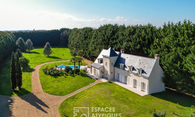 Located between Angers and Saumur, this charming house offers nearly 210 sqm of living space on a landscaped plot of approximately one hectare, entirely enclosed by tall hedges to ensure peace and privacy.