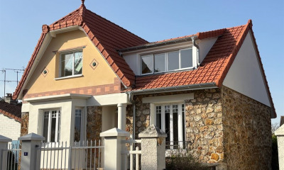 A staircase leads to the top floor, under the eaves: a large double bedroom, a “mini” bathroom, a small bedroom, a bedroom with attic space, a bathroom with toilet, two attics under the eaves on either side of the house are accessible via several doors.