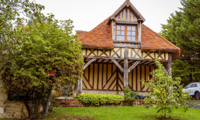 Rare Contemporary Architect's House in the Pays d'Auge (2020) – 255 m² of Living Space Nestled in the heart of a landscaped park of about 2,000 m², this contemporary architect-designed residence combines generous volumes, noble materials and an exceptional panoramic view over the Normandy countryside. The entrance, enhanced by a paved path alongside a koi pond, leads into a vast living space bathed in natural light thanks to large picture windows opening onto a 200 m² exotic wood terrace. The living room with three-sided fireplace and the American-style kitchen create a warm and convivial atmosphere. A bedroom with en-suite shower room and private terrace completes this level. Upstairs: a bright study, a spectacular master suite with rotunda, Lumiscene jacuzzi and balcony, two additional bedrooms and three bathrooms. Outside: garages, courtyard, pétanque court, landscaped grounds with rare plantings including cycas and a royal olive tree, all beautifully lit at night. Ideally located, only 10 minutes from Saint-Pierre-en-Auge and 20 km from Lisieux. Information on the risks to which this property is exposed is available on the website Géorisques: www.georisques.gouv.fr ? Pays d'Auge – Contemporary Architect's House with 180° Views From its automatic Corten steel gate, the property immediately makes a statement: a striking water walkway paved with silver travertine pebbles leads to the main entrance. The ground floor opens onto a vast open space, the true heart of the house, arranged over three distinct levels: • a living room with three-sided fireplace, • a TV lounge set slightly below, • an American-style kitchen by Arthur Bonnet, in textured black marble, elevated by a few steps and completed with a hidden back kitchen set behind a rotunda decorated with a countryside-inspired fresco. Also on this level: a wellness area to be finished, a double garage with advanced security system (including smoke devices), and a designer marble restroom highlighted with floor LEDs. Large aluminum bay windows with automated shutters extend the interiors onto several exotic wood terraces, bordered by gabion walls of volcanic stone and enhanced by olive trees, cycas and ornamental shrubs. The breathtaking 180° view over the Normandy plain creates an unparalleled sense of peace and serenity. A massive chestnut staircase leads upstairs, filled with natural light thanks to high rectangular windows framing glimpses of traditional half-timbered Norman houses nearby. This level includes: • a glass-enclosed office overlooking the reception area at 8 meters high, fitted with Cinna lighting to soften acoustics, adjacent to a library, • an exceptional master suite featuring a 20 m² walk-in dressing room with sensor lighting, a bedroom opening onto a rotunda with Lumiscene jacuzzi, extended by a large exotic wood balcony, and a bathroom clad in volcanic stone with unique golf-club shaped fittings, • two additional bedrooms with en-suite bathrooms (one in pebbles, the other in slate). The architecture is enhanced by a flat roof design, stone cladding from Burgundy, and luxurious Porcelanosa flooring in marble, quartz, slate or Swarovski crystal finishes. Full home automation (heat pump heating, alarm system, automated lighting, indoor/outdoor sound system) ensures ultimate comfort and convenience. Outside, the landscaped 2,000 m² garden, designed by a landscape architect, unfolds around a royal olive tree and a variety of Mediterranean essences (cycas, bamboo, green oak, olive trees). At night, dramatic lighting design transforms the property into a living tableau. A unique creation, blending cutting-edge design with the surrounding unspoiled nature — only 20 km from Lisieux.