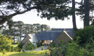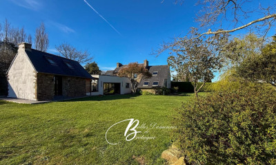 Nestled in a verdant setting in Plouvien, this superb stone and wood house of approximately 230 sqm sits on a landscaped and wooded plot of 1.75 hectares bordered by a river. Completely redesigned by its owners, it perfectly blends the character of an old building with the contemporary spirit of a meticulous renovation. The result is a unique living space, both warm and elegant, where nature seems to grace every window. From the moment you enter, the spacious living area captivates with its welcoming atmosphere. Exposed stone walls interact with metal and wood, creating a subtle balance between authenticity and modernity. The living room, opening onto the garden through large bay windows, invites relaxation while enjoying the verdant panorama. The open-plan, fully equipped, and functional kitchen extends into a convivial dining area, ideal for shared moments. A second, more intimate room offers a winter lounge or a cozy office, depending on your needs. On the ground floor, there is a pantry, a laundry room, and a shower room. A contemporary staircase leads to the first floor, where five bedrooms in soothing tones unfold, all bathed in light. A shower room with a walk-in shower and a bathroom complete the sleeping area, ideal for comfortably accommodating family and guests. Outside, the terraces extend the living spaces seamlessly and open onto a landscaped park reminiscent of a botanical garden. Winding paths, structured flowerbeds, and natural rocks create a tranquil setting. Below, the river bordering the property adds a touch of poetry and a unique charm. Several outbuildings, a 48 sqm barn, and a shed complete this harmonious ensemble. Nestled just minutes from the village of Plouvien and all its amenities, this property combines serenity and practicality. A true haven for lovers of architecture and nature, this unique house embodies a lifestyle that blends Breton authenticity with refined modernity. A one-of-a-kind property, designed for those seeking an exceptional home, where every space tells a story and invites contemplation. Energy rating: D / Climate rating: B. Estimated annual energy costs for standard use: between EUR2,840 and EUR3,900 per year. Average energy prices indexed as of January 1, 2021 (including subscriptions). Information on the risks to which this property is exposed is available on the Géorisques website: https://www.georisques.gouv.fr. Contact: Laurent 33 6 62 33 89 91. RSAC: 852199579 BREST. Agency fees: 5% including VAT, payable by the seller for properties over EUR200,000. A flat fee of EUR10,000 including VAT is payable by the seller for properties under EUR200,000.