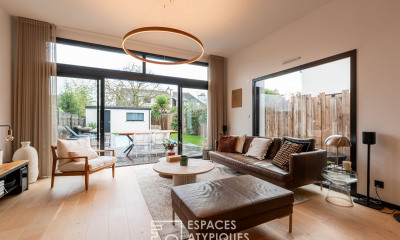 Dorothée Morel presents this sublime 1920s house, reimagined by renowned architect F. Boilevin, with 300m2 of living space plus a 100m2 terrace, nestled on a very quiet street in a pleasant neighborhood between St. Helier and Ste. Thérèse, close to the train station and town center. It will offer its future owners an exceptional living environment, an invitation to serenity and comfort, a perfect blend of cozy charm and spectacular beauty. Its 100m2 living space, bathed in light and boasting impressive proportions, invites contemplation. The architect's signature style is evident in the layout and materials used, blending contemporary loft aesthetics with an artist's studio feel. The space includes an entrance hall with a cloakroom, a toilet, a reading room, an office, a living room with a skylight and gas fireplace, and a kitchen designed by a second architect using premium materials such as Zimbabwean granite. All of this opens onto a west-facing terrace with a lounge area and summer kitchen, a pool house bar, an outdoor shower and toilet, and a heated swimming pool. On the first floor, there is a master bedroom with a terrace, a bathroom finished in Corian and rosewood, and a large dressing room. Two further bedrooms are separated by a shower room, and there is a separate toilet. On the third floor, in the attic, is a bedroom with an en-suite shower room. The basement features a home cinema with breathtaking views, a guest bedroom, a shower room, a cellar, a laundry room with a linen closet, a large storage room, and a utility room opening onto the garden. A garage and parking complete this unique property. Furnished sale possible. More information available upon request. This listing is presented to you by your agent registered with the St. Nazaire Trade and Companies Register under number 790306229 at a price of EUR1,550,000 + 3.1% agency fees, totaling EUR1,599,000 including fees, payable by the buyer. Information on the risks to which this property is exposed is available on the Géorisques website: http://www.georisques.gouv.fr