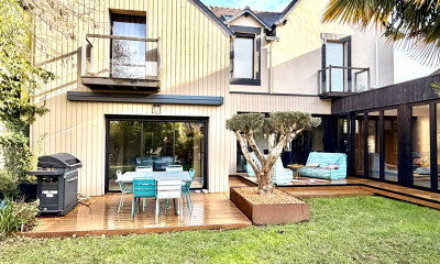 On the left bank of the port of Vannes, this 139 m² house is located on a plot of more than 500 m², offering a sought-after living environment, in the immediate vicinity of the city center. Entirely turned outwards, it seduces with its pleasant garden, its west-facing terrace and its view of the masts of the boats.