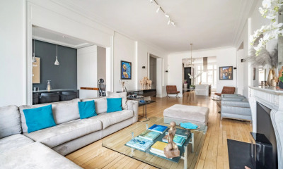 Located on the 5th and top floor of a semi-recent building with a concierge, on one of the most sought-after boulevards in Neuilly, this 147 m² apartment offers a rare feature: a 66 m² terrace directly accessible from the spacious double corner living room. This expansive outdoor area immediately becomes an additional living space, perfect for enjoying the stunning views of Paris and the Eiffel Tower at any time of day. Upon entering, you are greeted by a beautiful reception area that effortlessly opens onto the terrace through large windows. The well-oriented terrace invites you to dine al fresco, relax comfortably, or host memorable evenings — everything you could want from a suspended garden in the heart of the city. The spacious, functional eat-in kitchen is complemented by an office and a balcony, perfect for morning coffee. The master suite, which also features a small balcony, includes a private office, bathroom, and separate toilet. A second bedroom with its own bathroom completes the family-friendly layout. Additionally, a versatile room offers the possibility of a third bedroom or a cozy living room. The property includes two cellars. Possibility to acquire 2 parking spaces for 40.000 euros each (80.000 euros for both of them). The building (57 units) is well-maintained, with annual charges of approximately euros12,000. Energy consumption is estimated between euros3,469 and euros4,693 based on 2021 data, which is reasonable for the level of comfort. DPE Class E. In summary: this spacious, light-filled apartment is elevated by a rare terrace on the top floor, perfect for fully enjoying life at height and panoramic views of Paris, in a calm and secure setting.