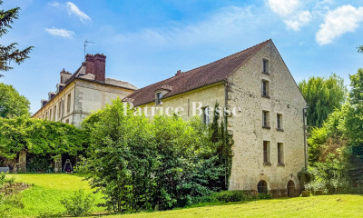 An 18th-century stone watermill that could be a family home or a second home, nestled in a bucolic backdrop in France's beautiful Vexin area, 35 minutes from Paris. Once you have gone through the gate, a hedge-lined drive leads up to the edifice of pale ashlar. The building faces the garden, spanning its breadth. The house has a basement, a ground floor, a first floor and a second floor in the roof space. With its gabled roof of flat tiles and its evenly spaced windows, it stands out as a strong, plain structure. On one side of it, the River Sausseron flows gently to a lock that is still in working order and that bears witness to the watermill's past. This watermill was built in the 18th century. At the time, it was one of the region's most efficient mills thanks to its large-diameter water wheel, turned by a diversion of the river than runs through the grounds of a neighbouring chateau. The building was converted in 1906 to become a metalwork plant. Later, it was turned into a house with spacious rooms and thick walls. Today, it offers 450m² of living space. The dual-aspect entrance hall connects to a 50m² kitchen and a 120m² lounge, bathed in natural light from many windows that look out at the garden. On the first floor, there are three bedrooms, an open office, two bathrooms and a utility room. They form a comfortable, practical space. On the second floor, in the roof, there are two other bedrooms, as well as a bathroom, a small room and around 150m² of convertible loft space. A basement and a large garage complete the building. The garden extends behind the house and in front of it. This outdoor space is made up of lawns, old trees and natural hedges.
