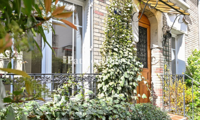 A large townhouse with a summer garden and conservatory on rue Legendre, in the 17th arrondissement of Paris. This townhouse built in 1886, tucked away behind an apartment block, boasts an exterior with plenty of character. This former family home was recently used as a boarding house before being converted back into its original purpose, with floor-space of almost 288-m². Its period features have been carefully preserved, such as the alternating bands of red and beige bricks, adorned with Virginia creepers, and its drop-arched openings. A path through a 55-m² private garden leads to a small flight of steps, at the top of which stands the wooden entrance door adorned with ironwork, above which there is the original awning. On the ground floor, the door opens into an entrance hall and hallway, with ornate cement tiles, which leads to a lounge, dining room, office and a large kitchen. This level boasts period features preserved from the date of construction: the English bond flooring, ceiling mouldings and small fireplace. To the rear, there is an almost 67-m² conservatory completely covered by a glass roof. This extension to the house is an invitation to relax, whatever the season. A wooden staircase with a wrought-iron balustrade leads to the upper floors. On the first floor, the landing leads to a large lounge with a marble fireplace, an office, a bedroom and a bathroom. On the second floor, the landing leads to four bedrooms bathed in light, a bathroom and a lavatory. A mezzanine floor can be reached from the ground floor or from the conservatory, adding a generous amount of floor-space. It includes a multimedia lounge, a music room, a shower room and a utility room. It is easy to imagine that the large, vaulted cellar occupying the entire basement level, could have been the treasure trove of a champagne merchant.