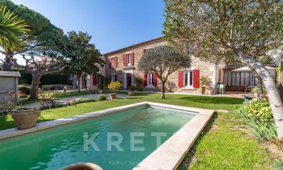 Twenty minutes south of Nîmes, in a preserved and human-sized Gard village, this vineyard house from 1891 immediately reveals its character: stone facade river, wood-clad fireplaces, Catalan vault ceiling kitchen. The volumes and materials speak for themselves. An authentic property, ideal for lovers of charming properties. The spacious living room of 64 m 2, promise beautiful evenings by the fireplace, opens onto a dining room also with its fireplace. Together, these two living rooms form a warm and friendly heart, perfectly suited to a family life or reception. The distribution, on several levels, is both fluid and bright: five bedrooms including a master suite with spa bath and dressing room, a large desk ideal for remote work, a multipurpose room (games room, TV lounge or additional bedroom) as well as a functional laundry room. On the garden level, a tiled workshop completes the set and offers many possibilities: professional space, creative or family outbuilding according to your needs. Outside, the enclosed landscaped garden of 450 m 2, wooded and carefully maintained, is organized around a pool conducive to relaxation. Drilling, automatic watering, secure indoor parking for two vehicles: everything has been designed for an optimal daily living comfort. This house has retained its soul while integrating the necessary equipment for a current life, without compromise between charm and functionality. Shops, schools, doctors and transport are within walking distance, offering a practical and peaceful living environment. The environment, between vineyards and nature, reinforces the appeal of this sought-after address. Ideally located near the main roads, fifteen minutes from the beaches of the Mediterranean and twenty minutes from Nîmes-Alès airport, this property deserves all your attention. Information and complete file on request.