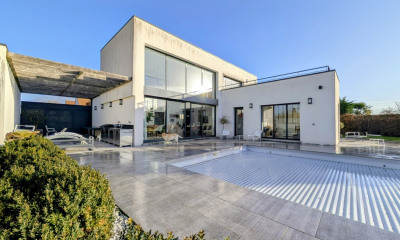 La Chapelle St Mesmin (45)? An exceptional property, both for its resolutely contemporary and refined construction and for the ingenious attention to detail that greatly contributes to its remarkable quality. Located just fifteen minutes from the quays of Orléans, the property sits on a beautiful, enclosed, gently sloping, and landscaped plot of 1,760 m2. So close to everything yet in a highly desirable area of La Chapelle-St-Mesmin, it overlooks the banks of the Loire River, just 300 meters away, in a verdant, wooded, and very peaceful setting. Welcomed by a lovely entrance hall, approximately 75 m2 of living space comprises a lounge, dining room, a high-end open-plan fitted kitchen, and an office. All eyes are drawn to the south-facing exterior, with its large windows and magnificent wooden terrace overlooking the heated swimming pool. There is also a very functional laundry room and a WC with a washbasin. The upper floor, reached by this superb, perfectly harmonious staircase, features a mezzanine, currently used as a gym, a master suite of approximately 27 m2, a bedroom also opening onto a terrace and swimming pool, a bathroom with shower and whirlpool bath, and a dressing room. There is also a second bedroom, an office/child's bedroom, and a shower room. A real added value also lies in the two completely independent studios of 19 and 20 m2 (shower room, toilet, kitchenette), which offer many possibilities. Rented for EUR480/month, I guarantee they will find tenants given the quality of life, but for private guests, they also provide a very welcome compromise of independence. Not only a 2-car garage/workshop, but also a full basement! It includes essential technical equipment: a paved courtyard, a roundabout, parking for 4 cars, a heat pump, air conditioning, central vacuum system, automatic watering system, water softener, exterior lighting, awnings, automatic gate, and an alarm system. Do you want to offer your family proximity to all amenities in a privileged living environment? Call me and let's discuss this property. Martine GOUPY, REGM IMMOBILIER
