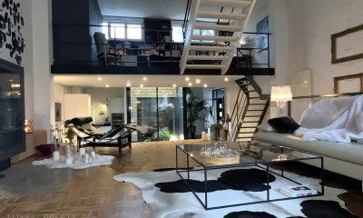 ORLEANS, Recouvrance, magnificent designer apartment for sale with a superb open-air terrace: a former workshop redistributed in a resolutely contemporary, industrial loft spirit and organized around a small green interior patio. Very large volumes bathed in light, beautiful amenities. A unique and atypical living environment nestled in the heart of the city and close to the banks of the Loire. On the ground floor, beautiful entrance, an original and open 85 m² living space including: the fitted kitchen and the dining room organized around the patio, and on a platform with a very high ceiling the living room with its fireplace and high windows, a superb suspended staircase perfectly integrated. The whole is flooded with natural light thanks to the set of landings, creating a modern and warm atmosphere. A master suite space, with bedroom opening onto the interior patio, and a bathroom with toilet. Mid-floor, on a mezzanine ideal for a library office or small living room which overlooks the large living room. A bathroom with toilet. On the upper floor, a large landing around the staircase leads to two bright bedrooms, as well as a bathroom with shower and toilet. Outside, a superb roof terrace shelters the 160 m² landscaped and furnished terrace: a haven of peace in the heart of the city. In the basement, a superb relaxation area of 67 m², warm, warm walls, possible use as a gym, cinema room, games room. Converted cellar. Floor area 255 m², Carrez area 188 m². On the ground floor, a large garage. Secure and entirely private entrance. Secure and residential co-ownership, quiet, ideally located, no work planned and few charges. This favorite loft, rare in Orléans, will meet all your expectations in terms of comfort, space, and services. DPE in E, no gas anomalies, no electricity anomalies. Photos on request. Exclusivity Nombre de lots de la copropriété : 20, Montant moyen annuel de la quote-part de charges (budget prévisionnel) : 1371 euros soit 114 euros par mois. Les honoraires sont à la charge du vendeur.<BR>Les informations sur les risques auxquels ce bien est exposé sont disponibles sur le site Géorisques : www. georisques. gouv. fr.<BR><BR>** ENGLISH SPEAKERS: please note that Capifrance has an international department that can help with translations. To see our range of 20,000 properties for sale in France, please visit our Capifrance website directly. We look forward to finding your dream home!