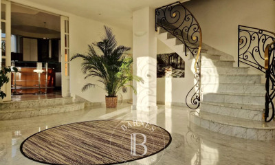 On the ground floor of the main building, a rotunda entrance leads to a double living room with dining room and a living room surrounded by a terrace with a view of the park, a kitchen with pantry, a large dressing room and a shoe dressing room. Upstairs, a bedroom en suite with bathroom and shower, jacuzzi, hammam, office/dressing room; a second bedroom, a bathroom/shower, a laundry room. On the same level, a living room/library is added to an air-conditioned (soundproof) cinema room. Two new bedrooms and a bathroom are available on the second floor.