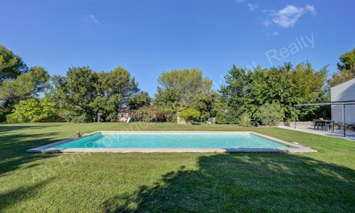 In EGUILLES, in a very peaceful location towards Aix-en-Provence, a stunning contemporary villa awaits you, ready to move into its 170m² of immediately habitable space in a verdant and tranquil setting. Built in a traditional style, the house is laid out as follows: entrance into a vast living room with impressive light and high ceilings, where a designer fireplace takes pride of place in the center of the space shared between a large lounge and a dining room. The perfectly fitted, semi-open kitchen is ideal for everyday family meals. Adjacent to this is a very practical pantry and then access to the large garage. The east wing houses the master suite with its garden views. The airy staircase leads to the upper floor, which comprises three bedrooms, each with a dressing room, sharing a bathroom and an open space that could be used as a playroom, office, or TV lounge. The property has been situated since 2017 on a beautifully landscaped plot of approximately 1900 m², complete with a swimming pool (8 x 4 m), several ype wood terraces, a pétanque court, and ample play and parking areas. Key features include a house with excellent natural light from both sides, energy efficiency thanks to its high-performance wood-burning fireplace, ducted air conditioning upstairs, a split-system unit in the master suite, and a red brick frame, resulting in an excellent energy rating. This is a perfect property for a family, whether as a primary or secondary residence. Public transport, shops, and schools are easily accessible, as is the TGV train station, and the airport is just 30 minutes away. Rarely available, this stunning villa is sure to impress!<BR> Agency fees are payable by the buyer, amounting to 4.01% including VAT of the price excluding fees.<BR>Les informations sur les risques auxquels ce bien est exposé sont disponibles sur le site Géorisques : www. georisques. gouv. fr.<BR><BR>** ENGLISH SPEAKERS: please note that Capifrance has an international department that can help with translations. To see our range of 20,000 properties for sale in France, please visit our Capifrance website directly. We look forward to finding your dream home!