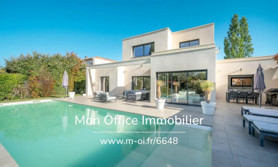 Outside, the meticulously landscaped garden features a 12 x 4-metre mirror overflow swimming pool, heated by a heat pump and treated with salt, a true contemporary signature of the property and an invitation to relax in an intimate, verdant and perfectly sunny setting.