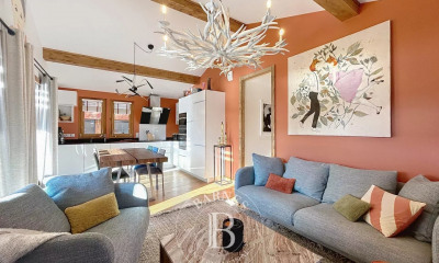 Located in the heart of the Portes du Soleil ski area, in the village of Les Gets, this renovated farmhouse of 320 sqm is set in the quiet and residential area of Magy, towards Mont Caly, on the south-facing side of the resort.
