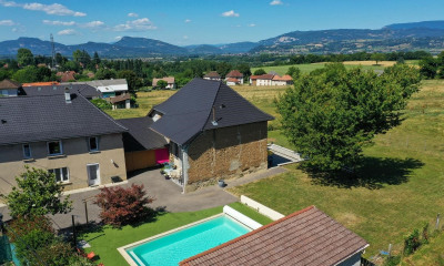 Charming property? 180 m² - 3200 m² wooded grounds - Exceptional view Stéphanie NOVELLI presents this property with an extraordinary view , absolute tranquility without overlooking , the charm and authenticity of a Dauphiné house completely renovated with care, combined with remarkable energy performance (classified B) and low consumption , so this property may be your future home. - A strategic location in the heart of the Savoyard foothills: - Just 5 minutes from the motorway toll plaza , - 20 minutes from Chambéry, 30 minutes from Aix-les-Bains, 1 hour from Annecy, 1 hour from Grenoble - Between Grenoble, Lyon, Chambéry and Aix-les-Bains , a central location to combine quality of life and accessibility. THE MAIN HOUSE (180 m²) , a true Dauphiné-style house full of character, completely renovated in 2021, offers: - A bright 60m² living room with a fully equipped kitchen, opening onto the park, - An office/bedroom , a laundry room UPSTAIRS: - 2 suites with private bathrooms , one of which has a custom-made dressing room , - A modular 36 m² mezzanine living room (additional bedroom, office, relaxation area), - A complete wine cellar for lovers of fine wines A 150 m² outbuilding currently converted into a garage for 6 vehicles, offering multiple possibilities? - An exceptional setting & high-end services: - Wooded park of over 3200 m² , - 3.5 x 12 lap pool with salt water and submerged cover - Heating via heat pump , - PVC shutters, comfort and durability. - A unique place where authenticity meets modern comfort, designed for those who want to combine quality of life, serenity and accessibility . - To find out more or arrange a visit, contact Stéphanie Novelli Berjallimmo, the 360° real estate agency that enhances the value of properties... and the lives built within them.