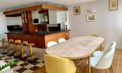 Con orientaciòn sur este apartamento107,92 m², construìdo en 1999, en un inmueble de 6 ???es comprende 5 habitaciones incluidos 3 dormitorios, 1 cuarto de baño y 2 WC. El està dotado de un salón, de una cocina Independiente equipada, de un balcón, de un sótano4 m² y de un aparcamiento. El està situado en el 5to piso con ascensor. Calefacción : Individual eléctrica. Diverso : intercomunicador, código digital, guarda.