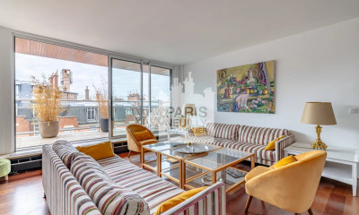 Magnífico apartamento amueblado de 70 m² con terraza y vistas a los tejados de París, situado en el Boulevard Flandrin, en el codiciado barrio de Henri Martin - La Muette, en el distrito 16. Situado en la 6ª planta con ascensor de un edificio de lujo con conserje, este apartamento ha sido completamente renovado por un arquitecto con prestaciones de alta gama. El apartamento seduce por sus amplios espacios, sus techos altos y la calidad de sus equipamientos. Cuenta con una elegante cocina comedor totalmente equipada, dos amplios dormitorios, dos cuartos de baño, un salón con sistema de audio SONOS integrado y un lavadero. El acceso al apartamento se realiza mediante un ascensor privado. El conjunto ofrece un entorno de vida especialmente tranquilo y luminoso en el corazón del distrito 16. Alquiler exclusivamente como segunda residencia o contrato de arrendamiento para empresas.