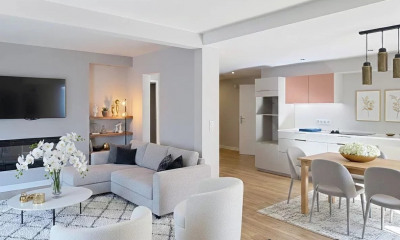 Con vistas bonitas y orientaciòn sur este apartamento110,08 m², construìdo en 1971 comporta 4 habitaciones incluidos 3 dormitorios y 3 WC. El està compuesto de un salón 49,95 m², de una cocina Equipada, de una terraza, de un garaje y de un sótano. Renovado, él està situado en el 6to piso con ascensor.