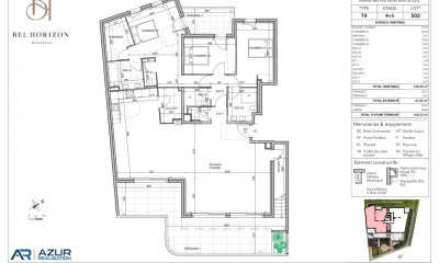 Con vistas bonitas y orientaciòn oeste este apartamentonuevo 120,91 m², en un inmueble de 5 ???es comprende 4 habitaciones incluidos 3 dormitorios y 2 WC. El està dotado de un salón 57,89 m², de una cocina Americana y de una terraza. El està situado en el 5to piso con ascensor. Calefacción : Climatización reversible individual. Diverso : código digital, televisión por cable.