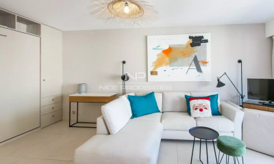 ¡Exclusivo! Apartamento de 3 habitaciones, vista al mar, de 99,44 m² ubicado en el barrio muy solicitado de Palm Beach, a 200 metros del mar, en un edificio con portero. Apartamento esquina orientado al suroeste, con terraza. Se compone de una sala de estar, una cocina independiente completamente equipada con despensa/lavandería adyacente, dos habitaciones, un baño y un aseo. Bien completamente renovado hace unos años: aire acondicionado en todo el apartamento, doble acristalamiento y persianas enrollables. Buen potencial de alquiler, especialmente para congresos y temporada de verano. Producto llave en mano, sin obras.
