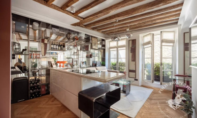 En un lugar tranquilo, con vistas bonitas y orientaciòn este-oeste este apartamento (Dúplex) 144,35 m², construìdo en 1900 dúplex, en un inmueble de 5 ???es comporta 6 habitaciones incluidos 4 dormitorios y 3 WC. El està compuesto de un salón 29,09 m², de un comedor, de una cocina Independiente, de un balcón y de un sótano. El està situado en el 5to piso con ascensor. Calefacción : Individual gas radiador. Diverso : intercomunicador, código digital, parqué.