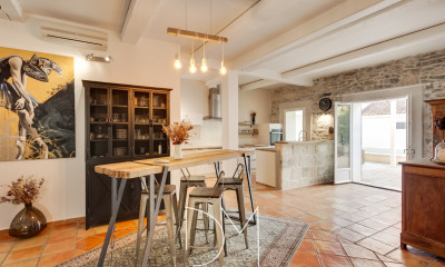 En un lugar tranquilo, con orientaciòn oeste esta casa 219 m², construìda en 1700, con un terreno de 260 m² comporta 6 habitaciones incluidos 3 dormitorios, 1 cuarto de baño y 2 WC. Ella està compuesta de una cocina Americana equipada, de una piscina y de una terraza. Calefacción : Gas. Honorarios : 4.88.