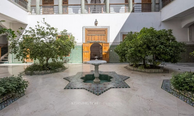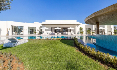 Vaneau Maroc, agencia inmobiliaria de lujo en Rabat, le ofrece un suntuoso palacio, único por su arquitectura y sus volúmenes excepcionales. Su excepcional ubicación en el corazón de la ciudad real de Rabat, en su barrio más privado y cotizado, hace de esta propiedad una inversión segura a largo plazo. La propiedad se distribuye en dos edificios y está construida sobre un terreno con triple acceso de 4500 m² y más de 50 m de longitud. Un acceso principal desde la calle y otro acceso, más confidencial y privado, desde un callejón de sentido único situado detrás, para poder circular sin ser visto. El primer edificio cuenta con un salón triple marroquí y un comedor para recibir invitados, y da acceso a un patio rodeado de columnas al aire libre y una magnífica piscina. Por último, un riad principal con piscina interior completamente diseñado para recepciones o para el bienestar. En la planta superior de este riad hay 5 suites, todas con vestidor y cuarto de baño. En el exterior, un apartamento más moderno completa esta propiedad. En el marco de una actividad comercial, es posible aumentar muy fácilmente la capacidad de acogida.
