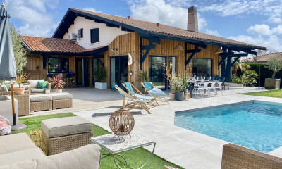 En un lugar tranquilo, con orientaciòn sur esta casa (Villa) 170 m², construìda en 2004, con un terreno de 850 m² posee 7 habitaciones incluidos 5 dormitorios y 3 WC. Ella posee un salón 60 m², una cocina Americana equipada, una piscina, una terraza, un garaje y 2 aparcamientos. Calefacción : Individual gas.