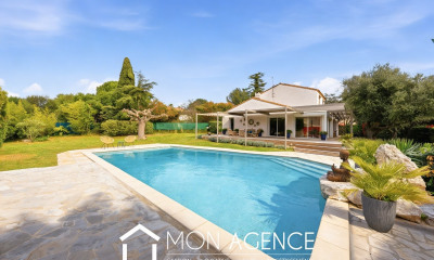 En un lugar tranquilo, con vistas bonitas y orientaciòn sur-oeste esta casa (Villa) 158 m², construìda en 1996, con un terreno de 1700 m² comprende 6 habitaciones incluidos 5 dormitorios, 2 cuartos de baño y 3 WC. Ella està dotada de un salón 43 m², de una Zona de cocina equipada, de una piscina, de una terraza, de un garaje y de 4 aparcamientos. Calefacción : Climatización reversible individual.