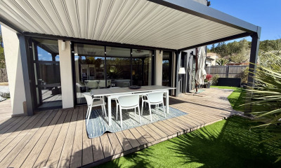 En un lugar tranquilo, con vistas bonitas esta casa 160 m², construìda en 1981, con un terreno de 1900 m² comporta 6 habitaciones incluidos 4 dormitorios y 2 WC. Ella està compuesta de una cocina Americana equipada, de una piscina, de una terraza, de 2 garajes y de 4 aparcamientos. Diverso : chimenea.
