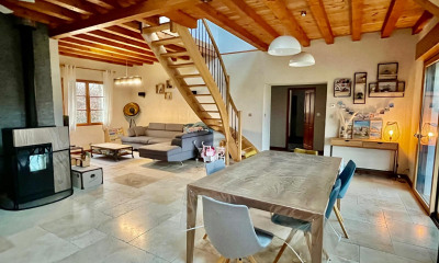 Con orientaciòn sur esta casa 198,5 m², con un terreno de 4013 m² comporta 8 habitaciones incluidos 5 dormitorios, 1 cuarto de baño y 2 WC. Ella està compuesta de un salón, de una cocina Americana equipada y de 2 garajes. Calefacción : Individual. Honorarios : 3.5.