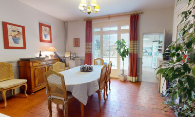 En un lugar tranquilo, esta casa 180 m², construìda en 1955, con un terreno de 1516 m² comprende 10 habitaciones incluidos 6 dormitorios, 1 cuarto de baño y 5 WC. Ella està dotada de un salón 49 m², de una cocina Equipada, de una terraza, de un garaje y de 2 aparcamientos. Calefacción : Individual gas radiador. Diverso : chimenea.
