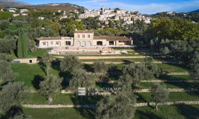 Regálese un estilo de vida excepcional con esta propiedad única, situada a sólo 25 minutos del aeropuerto internacional de Niza. Combinando refinamiento, confort y seguridad, esta prestigiosa residencia abarca unos 600 m² de espacio habitable y ofrece impresionantes vistas sobre el campo de golf y el espléndido panorama mediterráneo, desde la bahía de Niza hasta Mandelieu. Nada más entrar, le seducirá el amplio vestíbulo con guardarropa, que se abre a un suntuoso salón con una magnífica chimenea. El elegante comedor, con sus techos de 3 metros de altura, se abre a una amplia terraza. La cocina, amplia y funcional, se completa con una despensa y un lavadero. Una magnífica biblioteca/estudio con chimenea, un gran dormitorio con cuarto de baño en suite y otros dos dormitorios que comparten un cuarto de baño completan este refinado espacio. En la planta superior hay dos suntuosos dormitorios principales. Uno de ellos cuenta con cuarto de baño en suite, mientras que el otro se abre a una terraza privada en la azotea. Los vestidores "Monsieur" y "Madame" y un cuarto de baño de mármol rosa con jacuzzi y ducha ofrecen lo último en lujo. El sótano alberga una hermosa bodega climatizada y una cava de puros, así como una gran sala de juegos. La espaciosa terraza cubierta cuenta con una cocina de verano y un comedor, perfectos para el entretenimiento. Una piscina infinita climatizada de 24 metros con spa y terrazas de piedra de varios niveles, cascada y playa de roca artificial añaden atractivo al exterior. Los 10.000 m² de jardines, diseñados por Jean Mus, cuentan con suaves terrazas, muros de piedra y 160 olivos. La casa del guarda, de 60 m², dispone de dos habitaciones principales, una entrada independiente, dos plazas de aparcamiento y un huerto. Un garaje seguro para 3 ó 4 coches completa esta propiedad de lujo con una vista panorámica incomparable.