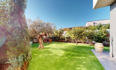 En una prestigiosa zona residencial de Villeneuve-de-la-Raho, esta villa contemporánea de 181 m² impresiona por su arquitectura moderna y sus acabados de alta gama. Construida sobre una parcela ajardinada de más de 700 m² sin vecinos que den a la propiedad, encarna un estilo de vida refinado, a pocos pasos del lago, a solo cinco minutos de Perpiñán y a diez minutos de las playas. La planta baja cuenta con una elegante entrada que conduce a un amplio y luminoso salón con acceso directo al jardín. La cocina americana, totalmente equipada, con lavadero y despensa contigua, crea un ambiente acogedor y a la vez contemporáneo. Una suite principal completa esta planta, con vestidor a medida, baño privado y ducha exterior para disfrutar de momentos de relax en total privacidad. Un gimnasio, convertible en despacho o habitación de invitados, amplía aún más la funcionalidad de la vivienda. La primera planta ofrece dos amplios dormitorios con vestidor y zona de despacho, así como un baño moderno y un aseo independiente. La amplitud, la luminosidad y los acabados reflejan un diseño meticuloso. El jardín paisajístico se extiende alrededor de una moderna piscina con zona de playa, en un entorno verde y tranquilo. Un garaje cerrado y varias plazas de aparcamiento completan esta propiedad. Ubicada al final de una urbanización residencial, frente al pinar, la propiedad goza de una paz y tranquilidad excepcionales. Una prestigiosa villa en Villeneuve-de-la-Raho, ideal como residencia principal o casa de vacaciones, que ofrece un entorno de vida excepcional en los Pirineos Orientales. CALIFICACIÓN ENERGÉTICA A (20) / CALIFICACIÓN CLIMÁTICA A (1). Costes energéticos anuales medios estimados para un uso estándar, basados en los precios de la energía de 2021: entre 380 EUR y 570 EUR. La información sobre los riesgos a los que está expuesta esta propiedad está disponible en la página web de Géorisques para las zonas correspondientes. Contacto: Marjorie LIMACHER +33 6 51 89 99 51
