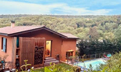 En un lugar tranquilo, con vistas bonitas y orientaciòn sur-este esta casa 170 m², construìda en 2017, con un terreno de 1485 m² posee 5 habitaciones incluidos 4 dormitorios, 1 cuarto de baño y 2 WC. Ella posee un salón 68 m², una cocina Americana equipada, una terraza, un garaje y 2 aparcamientos. Calefacción : Individual eléctrica.