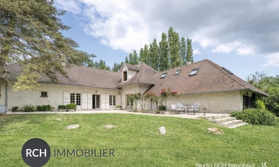 Con orientaciòn sur esta casa (Villa) 400 m², construìda en 1948, con un terreno de 5005 m² posee 8 habitaciones incluidos 5 dormitorios, 3 cuartos de baño y 4 WC. Ella posee un salón, una cocina Independiente equipada, una piscina y un sótano. Honorarios : 3.91.