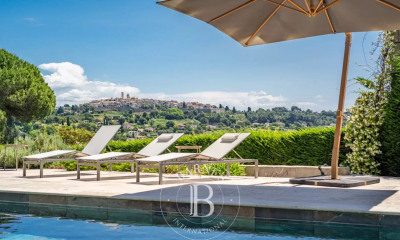 Situada en el corazón de la finca más prestigiosa de las hermosas colinas de Saint Paul, esta amplia y encantadora propiedad familiar con piscina goza de vistas panorámicas a las montañas y al pintoresco pueblo de Tourrettes-sur-Loup, ¡emblemático de la Edad Media! La villa consta de un hall de entrada, un enorme salón triple con chimenea y techo de catedral, una gran cocina comedor con acceso a una bonita terracita campestre, tres grandes suites con cuarto de baño y vestidor, y dos dormitorios con cuarto de ducha. El gran entresuelo puede utilizarse como estudio, sala de lectura, sala de piano o sala de juegos, ¡según los deseos del futuro feliz propietario! Lavadero, sótano y amplio garaje para dos vehículos. El jardín, en su mayor parte plano, está bellamente ajardinado y ofrece mucho espacio para relajarse y jugar. La casa de la piscina, cerca de la villa, está protegida del sol en todo momento y dispone de todas las comodidades que pueda desear: barbacoa, nevera, bar y fregadero. Esta propiedad excepcional cumplirá todas sus expectativas en cuanto a tamaño, tranquilidad, ubicación y encanto.