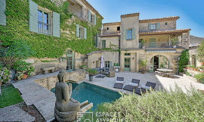 A tan solo 20 minutos de Uzès, enclavada en el corazón de un pueblo con encanto, esta antigua casa de campo vitivinícola de aproximadamente 340 m², dividida en tres espacios independientes, ofrece un estilo de vida único donde la autenticidad, la naturaleza y la creatividad convergen en un jardín paisajístico de 2.800 m² con piscina. Tras sus muros de piedra, el edificio se organiza en torno a tres zonas diferenciadas. Esta configuración ofrece una gran flexibilidad: una vivienda familiar, un negocio de hostelería, una residencia artística o un proyecto colectivo. Los espacios conservan la esencia del lugar: piedra vista, múltiples zonas de circulación y habitaciones con acceso directo al exterior. La propiedad cuenta con 7 dormitorios y 6 baños, lo que permite alojar a familiares y amigos respetando la privacidad de todos. En el exterior, el jardín, diseñado según los principios de la permacultura, ofrece un entorno exuberante y variado. Entre los diversos árboles y arbustos, encontrará una piscina (7 x 4 metros), zonas de sombra bajo los árboles y dos encantadoras terrazas perfectas para disfrutar de las cálidas noches de verano. El jardín también cuenta con numerosos árboles frutales de cosechas escalonadas, un huerto y un pozo que necesita restauración. Un estudio de artista de aproximadamente 70 metros cuadrados completa el espíritu creativo de la propiedad, ofreciendo un espacio luminoso dedicado al trabajo con arcilla, pintura o cualquier otra actividad artística. Varias bodegas y un garaje completan el conjunto. Técnicamente, la calefacción se proporciona mediante una bomba de calor, con radiadores de hierro fundido que distribuyen el calor a dos de las viviendas, mientras que la tercera está equipada con radiadores eléctricos y una estufa de leña. La propiedad también cuenta con un sistema de recolección de agua de lluvia de 30.000 litros y un pozo canadiense (con intercambiador de calor geotérmico). Finalmente, está conectada a internet de fibra óptica y a la red de alcantarillado. Impregnada de historia y rebosante de energía creativa, esta casa es ahora un espacio habitable único, listo para recibir nuevos proyectos y nuevos habitantes, en un sutil equilibrio entre autenticidad, naturaleza y libertad. Un lugar inspirador para vivir, esta propiedad atraerá a quienes buscan un espacio habitado por la naturaleza, propicio para encuentros, proyectos y nuevas historias por escribir. Contacte con Virginie +33 6 77 39 33 14. CALIFICACIÓN ENERGÉTICA: B / CALIFICACIÓN CLIMÁTICA: A. Puede encontrar información sobre los riesgos a los que está expuesta esta propiedad en la página web de Géorisques: www.georisques.gouv.fr